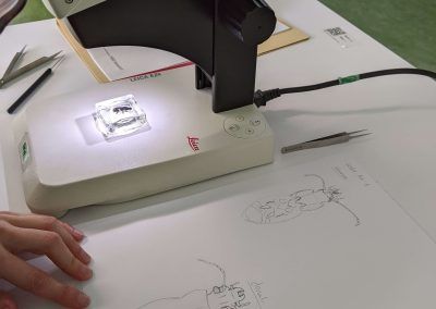 Große, Kleine, dicke, dünne, glänzende und matte mit langen und mit kurzen Fühlern: Die Vielfalt der Käfer ist fast unerschöpflich. Einen kleinen Teil dieser Vielfalt konnten die Teilnehmenden am KennArt-Grundkurs „Käfer bestimmen“ kennenlernen. Der Kurs startete im Dezember 2021 mit digitalen Vorlesungen, die einen ersten Einstieg in die Fülle und Vielfalt der Käferarten erleichtert haben. Mit diesem Vorwissen und großer Vorfreude starteten die Präsenztage im Februar 2022. Bevor allerdings mit der Bestimmung von Käfern gestartet werde konnte, durften alle Teilnehmenden eine Zeichnung des Großen Breitkäfers (Abax parallelepipedus) anfertigen, um alle relevanten Körperteile kennenzulernen. Ausgestattet mit dem Wissen zu Femur, Überaugenborsten und Pedicellus tauchten die Teilnehmenden ein in die Bestimmung von Laufkäfern, Blatthornkäfern, Marienkäfern und Co. Um die Motivation aufrecht zu halten, wurden die stundenlangen Bestimmungsübungen durch kurzweilige Vorträge von unserem Käferexperten Dr. Michael Meyer aufgelockert. Aber auch ein Kursteilnehmer zeigte großes Engagement und brachte Holzschnitte mit Käferspuren mit, die in einem kurzen Exkurs über die Lebensweise von Käfern in und am Holz eingebunden wurden.